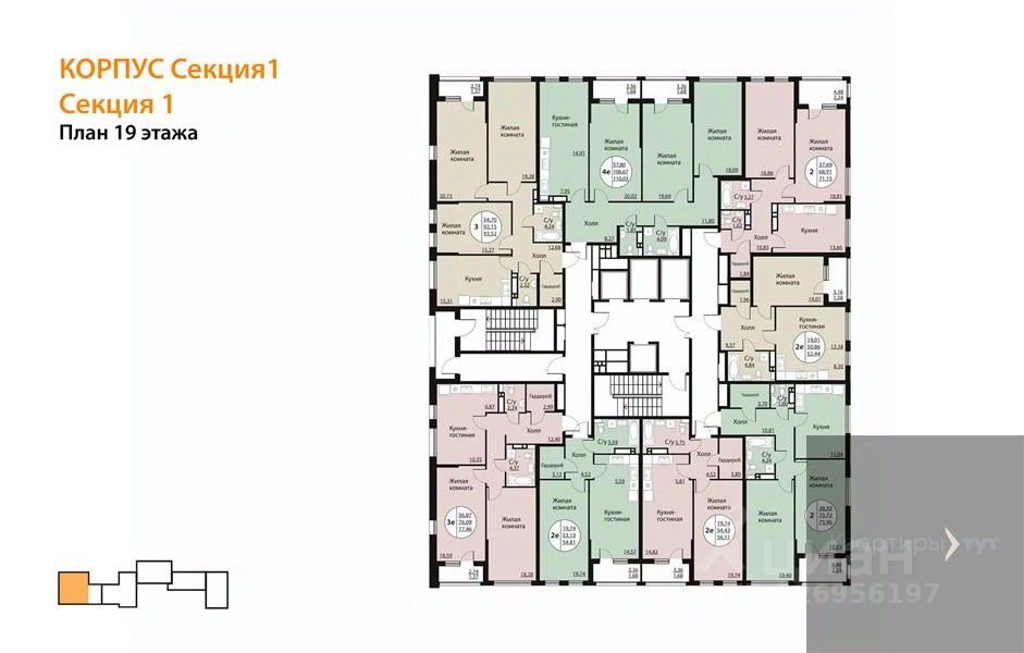 Квартира: 2 к 75,96 кв.м., 19 этаж в комплексе Бунин, 5 очередь, корп.Секция 1, сдача: 4кв. , этажей: 25, адрес Воронеж г., Московский пр., д. 140, Застройщик: ВДК.