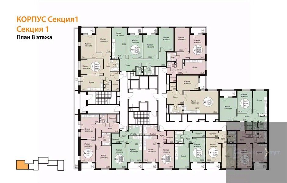Квартира: 1 к 44,25 кв.м., 8 этаж в комплексе Бунин, 5 очередь, корп.Секция 1, сдача: 4кв. , этажей: 25, адрес Воронеж г., Московский пр., д. 140, Застройщик: ВДК.