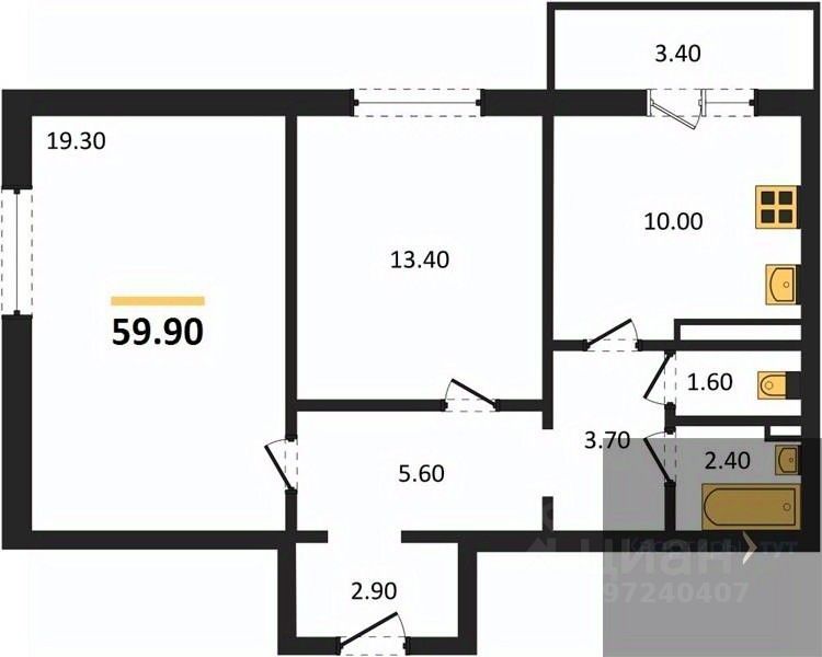 Общая площадь59,9 м2