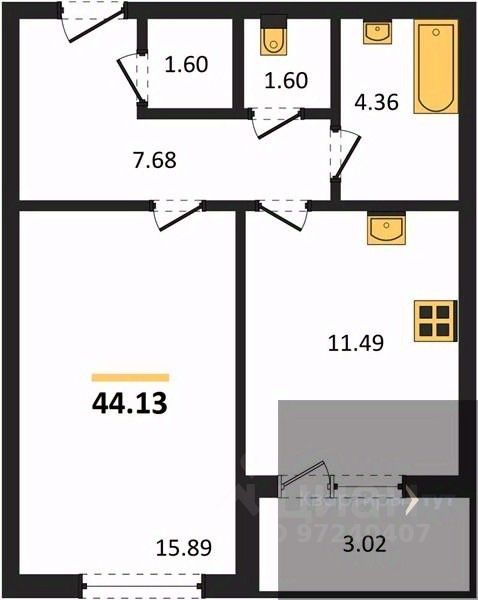 Квартира: 1 к 44,13 кв.м., 2 этаж в комплексе Бунин, 5 очередь, корп.Секция 1, сдача: 4кв. , этажей: 25, адрес Воронеж г., Московский пр., д. 140, Застройщик: ВДК.