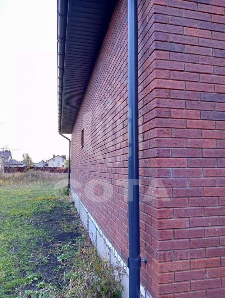 Стены выложены из газосиликатного блока и облицованы кирпичом.