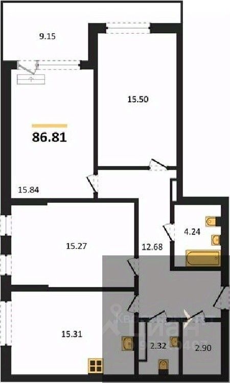 Квартира: 3 к 86,81 кв.м., 22 этаж в комплексе Бунин, 5 очередь, корп.Секция 1, сдача: 4кв. , этажей: 25, адрес Воронеж г., Московский пр., д. 140, Застройщик: ВДК.