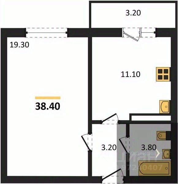 Общая площадь38,4 м2