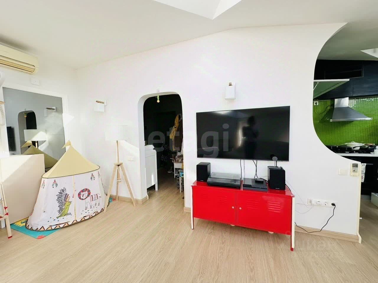Продается квартира-студия площадью 50,1 кв. м в малоэтажном кирпичном доме всего на 15 квартир в тихом зеленом районе СХИ. Объект отличается рациональной планировкой: просторная гостиная органично совмещена со спальной зоной, а кухонный блок выделен отдельно. Ключевое преимущество — наличие отдельной гардеробной за раздвижной дверью и большой антресоли для хранения, что редко встречается в студиях. Санузел совмещенный, с местом для установки стиральной машины. В квартире выполнен свежий косметический ремонт летом 2022 года: заменен ламинат, обновлены покраска стен и потолков, кухонная столешница и сантехника. Все предметы мебели и бытовая техника остаются новому владельцу, позволяя заехать сразу после сделки.
