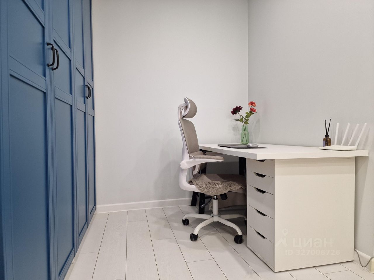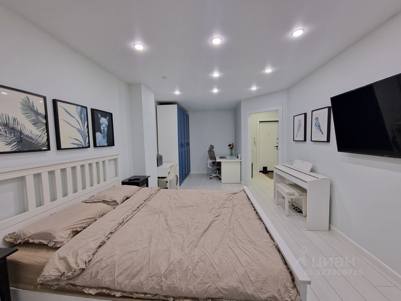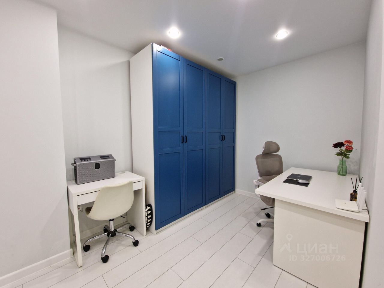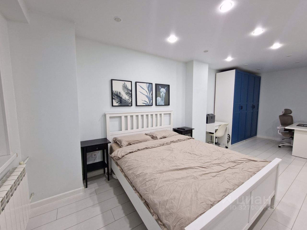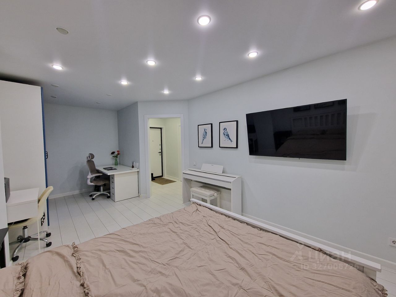 - большая комната удобно зонирована на спальню и рабочее место,
