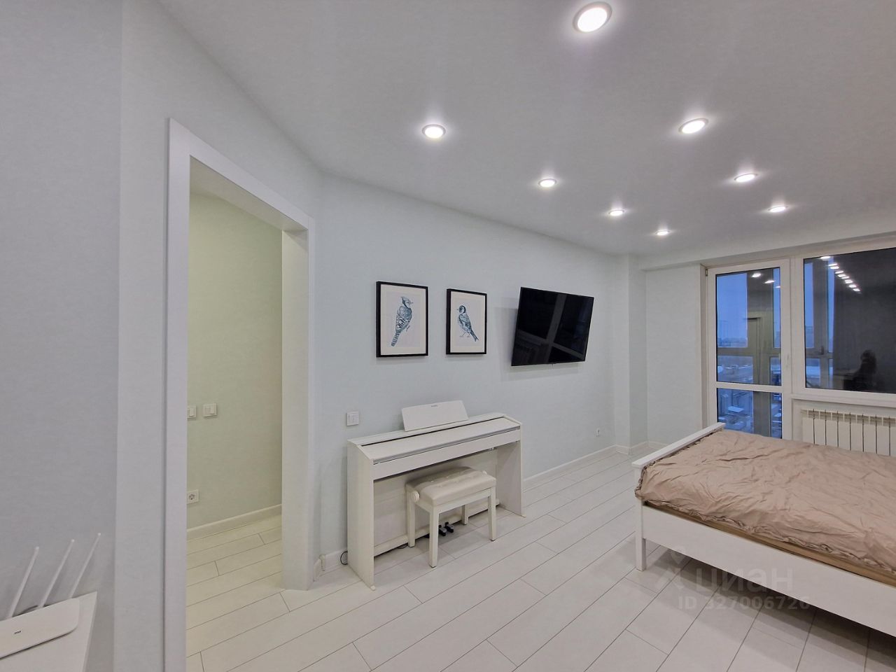 - на полу ламинат, стены качественно окрашены, хорошие двери, окна, много света,