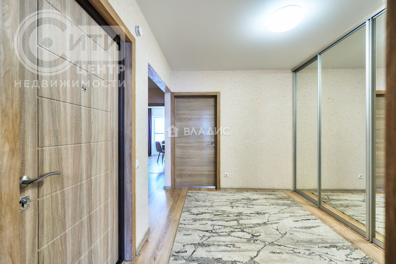 Встречает очень просторный холл в котором достаточно места для первичной гардеробной зоны и полноценного хранения вещей - организован большой встроенный шкаф, с зеркальными фасадами - вещи буквально всей семьи в порядке!