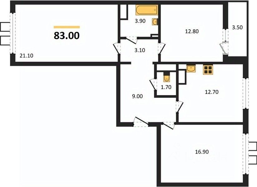 Общая площадь83 м2