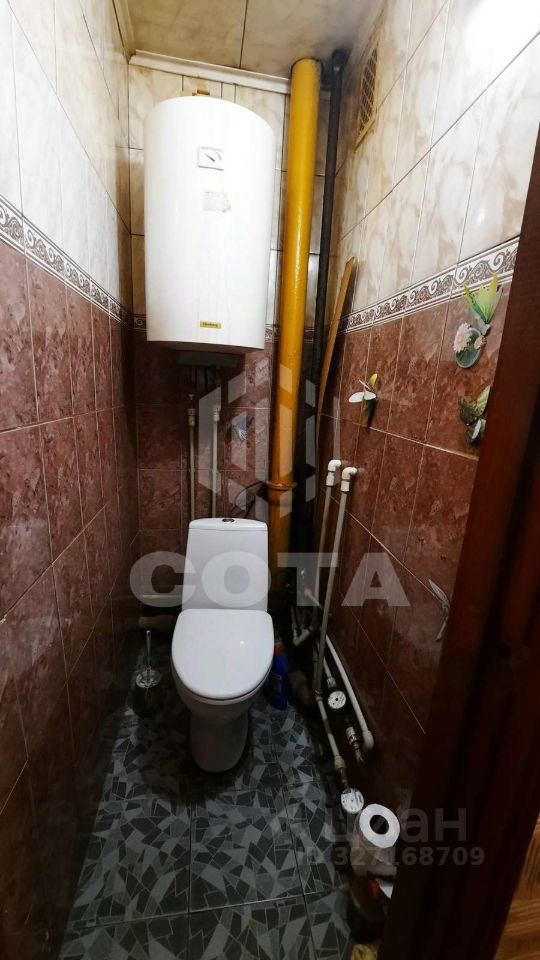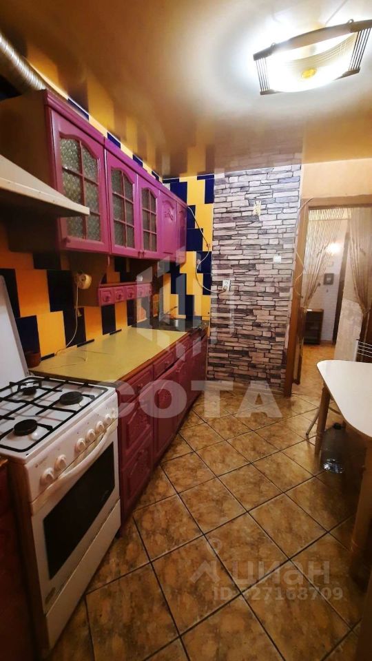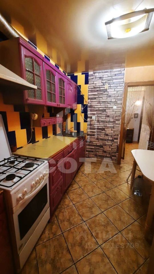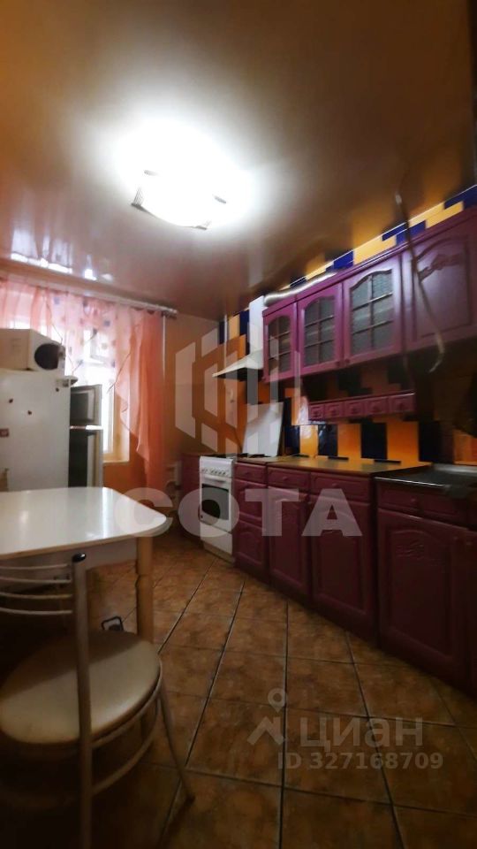 Квартира расположена на первом этаже кирпичного дома. Удобная планировка с большой и просторной лоджией - выход из гостинной и окно из кухни. В комнате установлена стенка старого образца, есть телевизор. В качестве спального места - раскладывающийся диван. Пространство комнаты зонировано на спальную и гостиную. Кухня меблирована, из техники газовая плита и холодильник. Стиральная машинка установлена в ванной. Санузел раздельный, есть водонагревательный котёл.