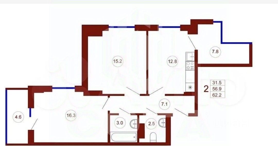 продам 2-к, Станкевича, 45 корп. 111 800 000 ₽