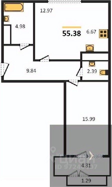 Общая площадь55,38 м2
