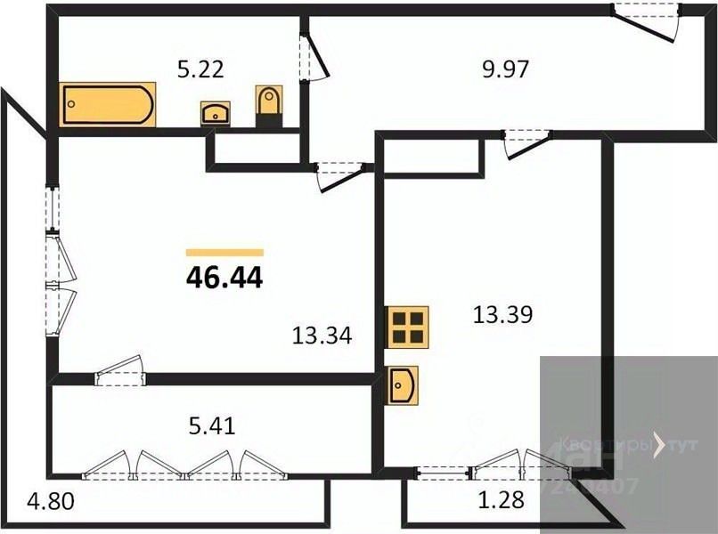 Общая площадь46,44 м2