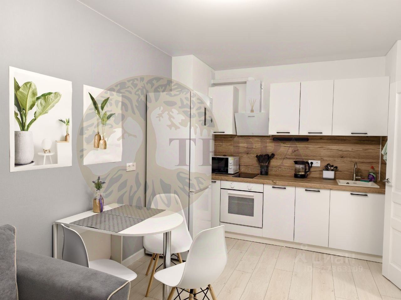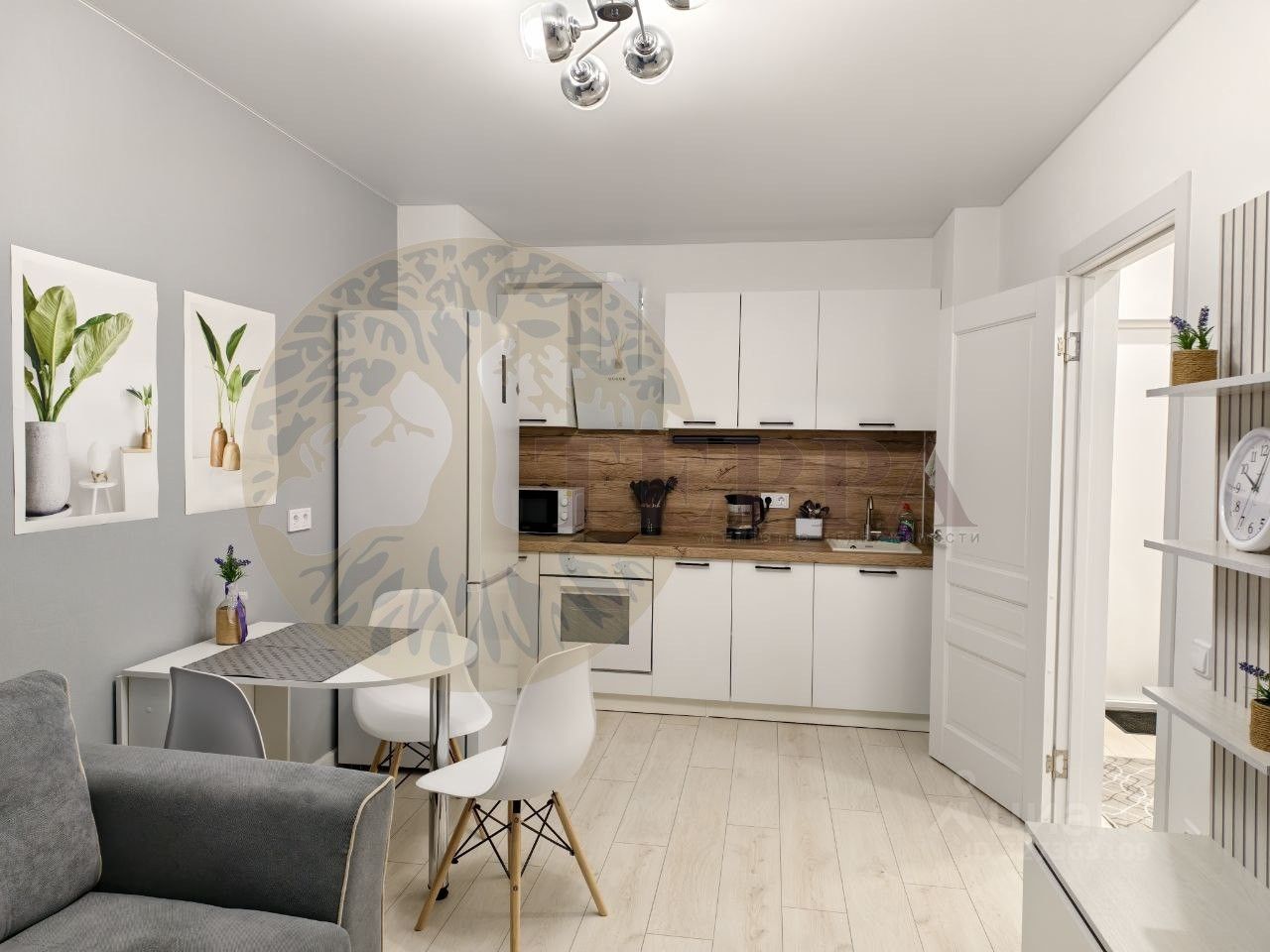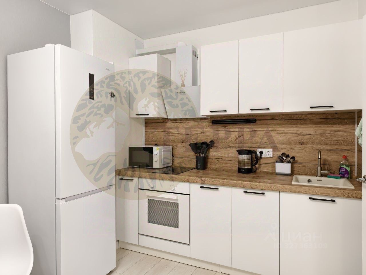 - новая бытовая техника (варочная панель , стиральная машина, духовой шкаф, холодильник , чайник , микроволновка ,смарт TV с Алисой, Wi -fi)