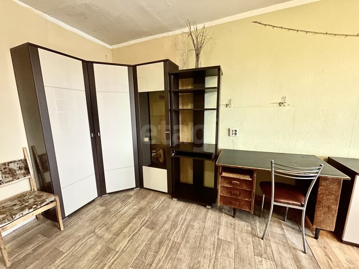 В квартире имеется просторная жилая комната, в которой установлены необходимая мебель и техника для комфортного проживания: стол, стенка, кровать, шкаф.